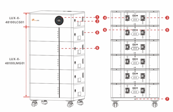 Модульный дизайн батареи LUX-X-48100LG01 упрощает установку и расширение ее мощности. Модули могут добавляться или удаляться по мере необходимости, что обеспечивает гибкость и масштабируемость для удовлетворения конкретных требований к мощности.