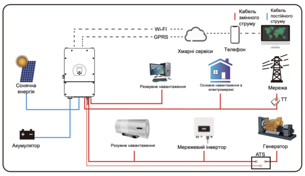 Гибридный инвертор SUN-10K-SG02LP1-EU-AM3 Deye WiFi (10 кВт, 1 фаза, 3 MPPT, LV)