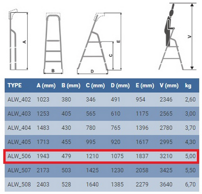 Стрем'янка Elkop ALW 506 - одностороння драбина, призначена для домашнього використання. Завдяки антиковзаючим полімерним опорам може використовуватися як на вулиці, так і в приміщенні. Стрем'янки цієї серії обладнані широкою верхньою сходинкою (8х15 см) і зручною ручкою.