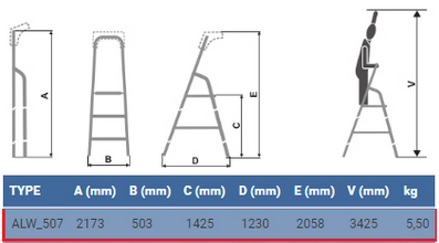 Стрем'янка Elkop ALW 507 - одностороння драбина, призначена для домашнього використання. Завдяки антиковзаючим полімерним опорам може використовуватися як на вулиці, так і в приміщенні. Стрем'янки цієї серії обладнані широкою верхньою сходинкою (8х15 см) і зручною ручкою.