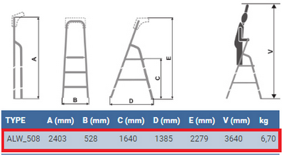 Стрем'янка Elkop ALW 508 - одностороння драбина, призначена для домашнього використання. Завдяки антиковзаючим полімерним опорам може використовуватися як на вулиці, так і в приміщенні. Стрем'янки цієї серії обладнані широкою верхньою сходинкою (8х15 см) і зручною ручкою.