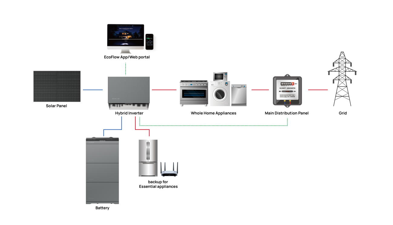 Гібридний інвертор EcoFlow PowerOcean дозволяє високоефективне використання та зберігання сонячної енергії для досягнення незалежності від електропостачання у вашому будинку. Трифазний інвертор інтегрований з резервним модулем, який надає вихідну потужність до 10 кВт, щоб живити практично кожний необхідний пристрій у разі відключення від мережі.